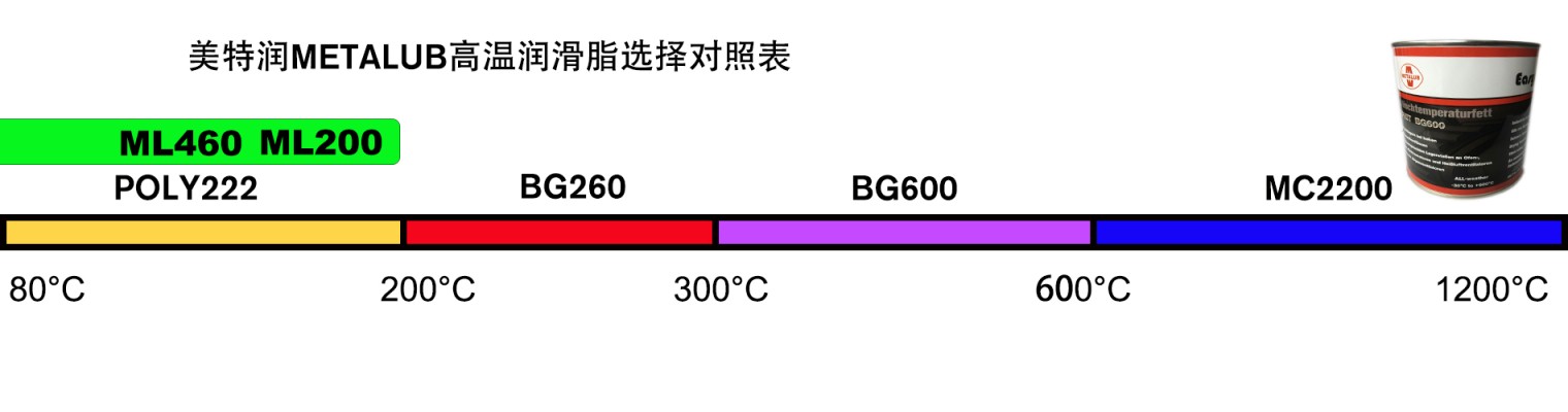 如何选择高温润滑脂?一种情况是工作环境温度高,要选用耐高温润滑油脂如MC2200,BG600,BG260,ML200等。另一种情况是环境温度不高,由于工作负荷重,油脂选用不合适,造成摩擦生热,升温过高易抱轴卡死,对此要选用重负荷高温润滑脂例如POLY222,ML460,HD600以及HEP-1087M。对于高温润滑,用错油脂就好比医生开错方抓错药。