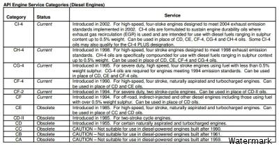 requirements of non-synchronized manual transmissions in heavy-duty trucks and in buses.API Engine Service Categories (Gasoline/Petrol Engines)