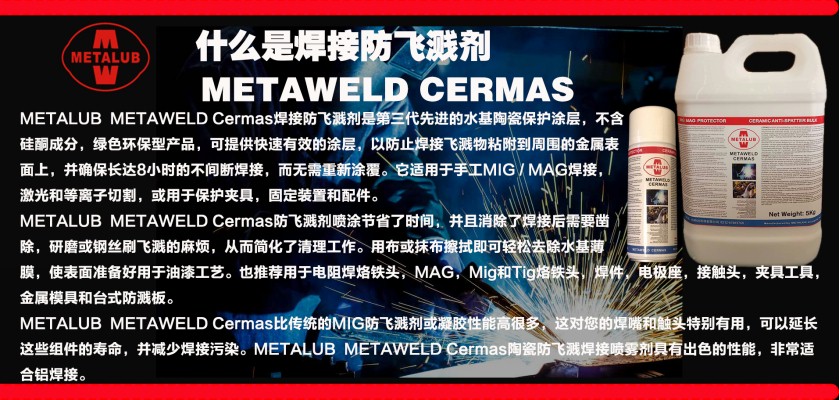 清洗后,请使用陶瓷焊接防飞溅剂METALUB METAWELD CERMAS