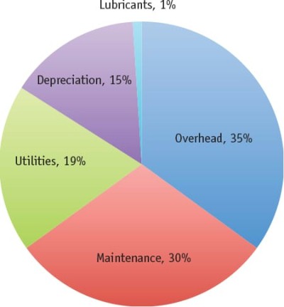 1.润滑的底线影响。该图表显示了按类别划分的工厂总体运营成本的平均细目。