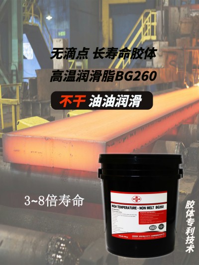 胶体高温润滑脂MetalubBG260 是一个专门定制的特殊高温轴承润滑脂,采用胶体润滑专利技术,具有在传统润滑脂所不能达到的高温度下,像“油脂一样”润滑。胶体高温润滑脂