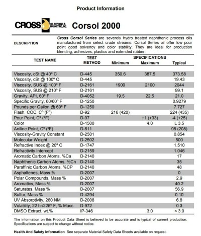 Cross Corsol Series are severely hydro treated naphthenic process oils manufactured from select crude streams. Corsol Series oil offer low pour point good solvency and color stability. They are ideal for production blending, adhesives, plastics and extended rubber.